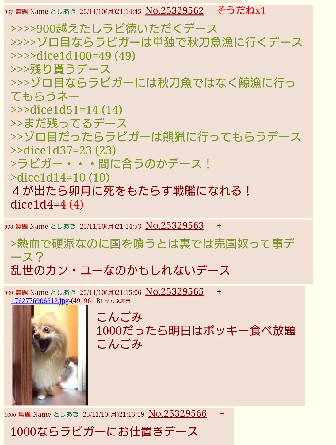 | … | 67無題Nameとしあき 25/11/10(月)22:40:19No.25329778そうだねx1念を送ったデース |