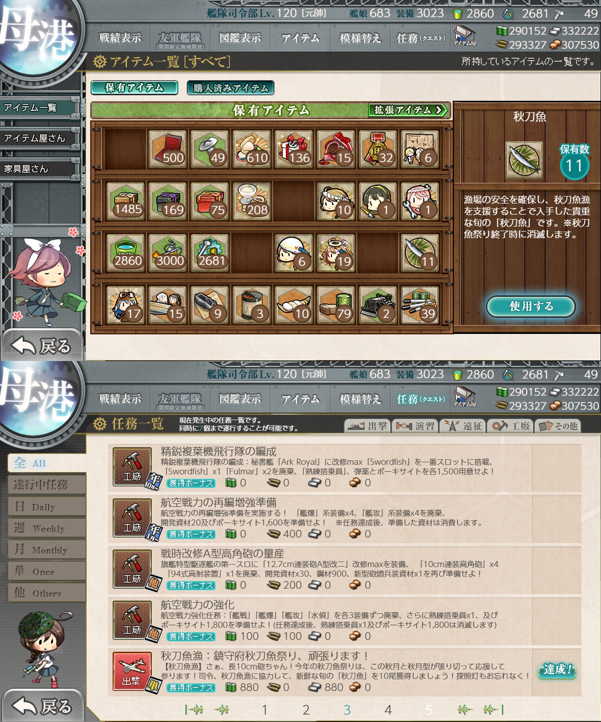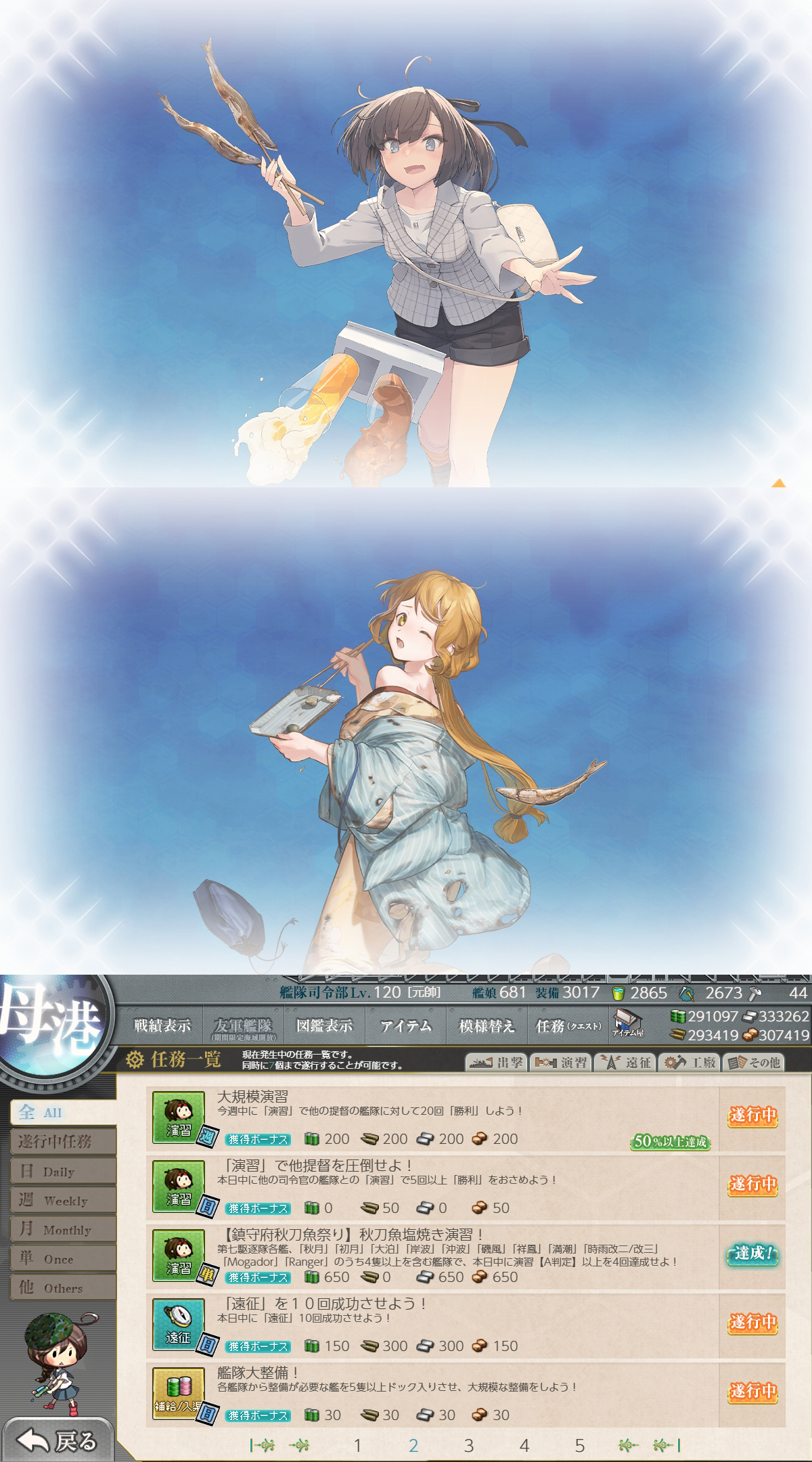 | … | 968無題Nameとしあき 25/11/13(木)19:43:24No.25333452そうだねx1秋刀魚任務スレの情報だと秋刀魚の回復って時間じゃなくて他の海域に出撃した回数を見るって検証結果があるそうデース |