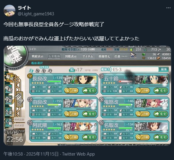 | … | 56無題Nameとしあき 25/11/14(金)22:06:17 ID:1mmp4apcNo.25334965そうだねx8>E-3まで攻略したところで燃料弾薬10万使ったけどここで攻略のペースを落として良いのかこのまま進んで良いのか |