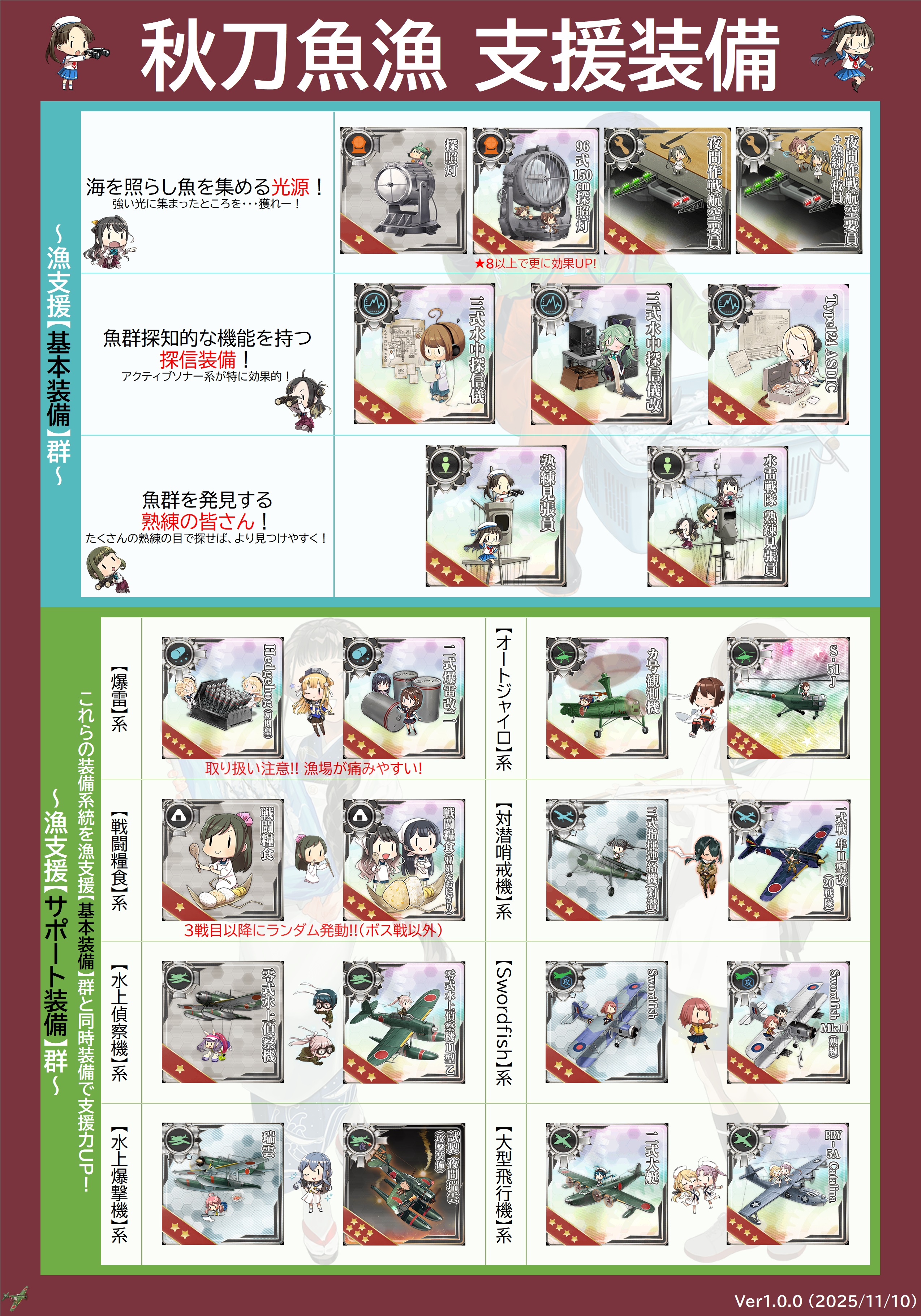 | … | 55無題Nameとしあき 25/11/18(火)02:33:06 ID:5zWLMiggNo.25339604+6-5下ルートは最初の対潜以外どのマスも秋刀魚が出るのがメリットだから全部S勝利を狙うと警戒陣の出番が無いな |