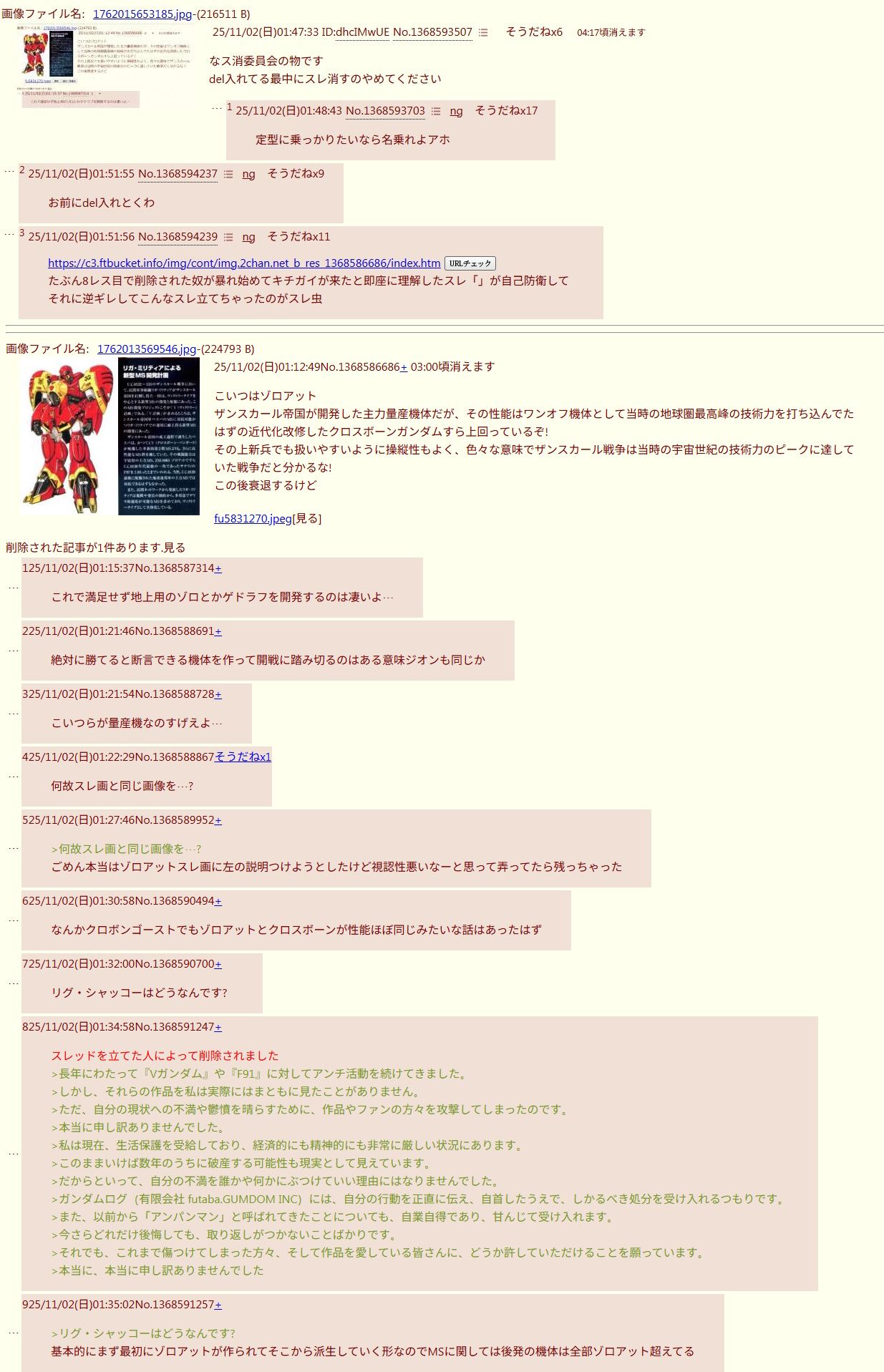 | … | 225/11/03(月)11:03:01No.1369042074+>長年にわたって『Vガンダム』や『F91』に対してアンチ活動を続けてきました。  |