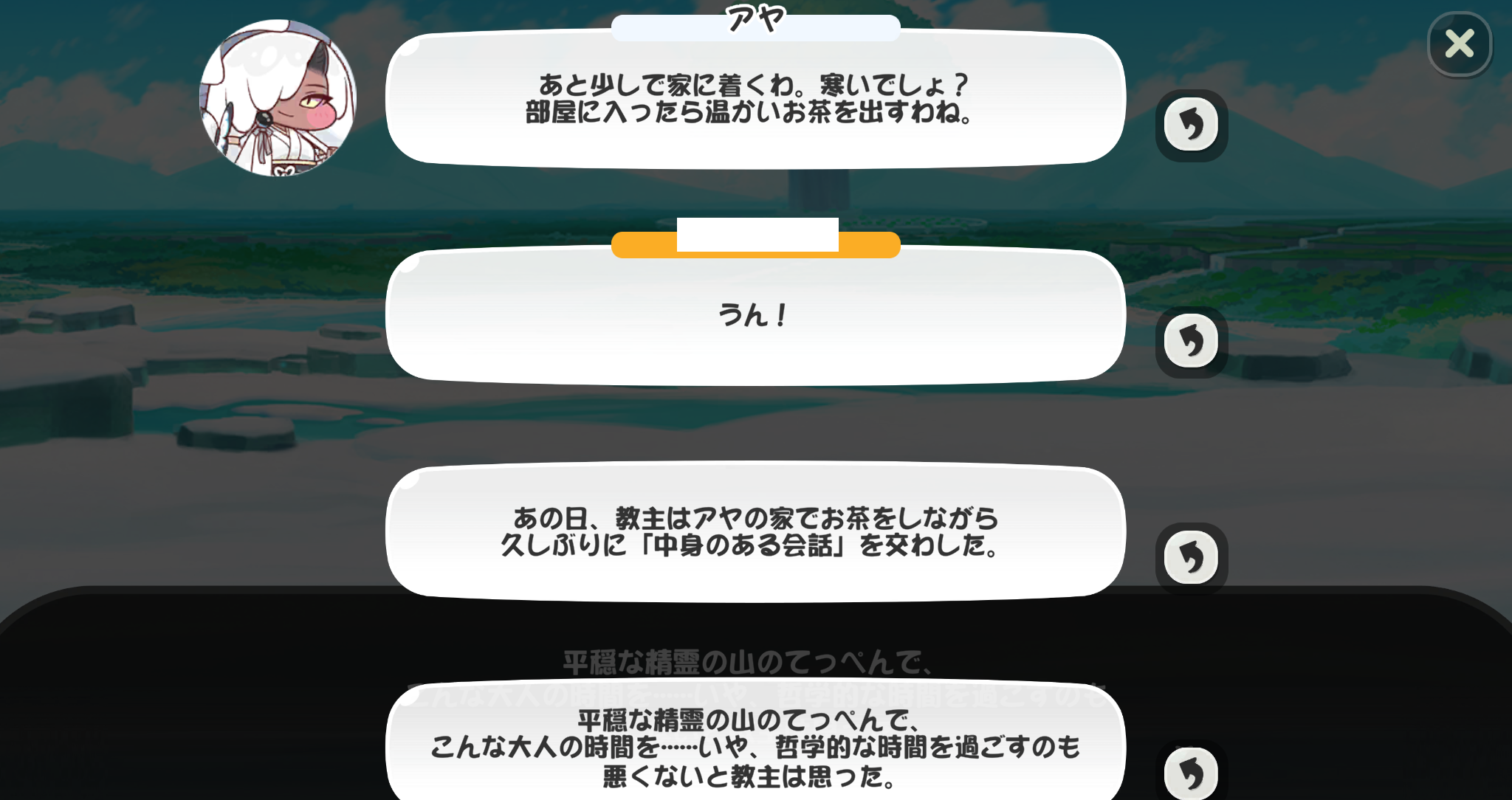 | … | 7225/11/03(月)14:55:22 ID:8jlV1pG.No.1369103091+>やること減ってきたしのんびりストーリーでも読んで見てるにゃん |
