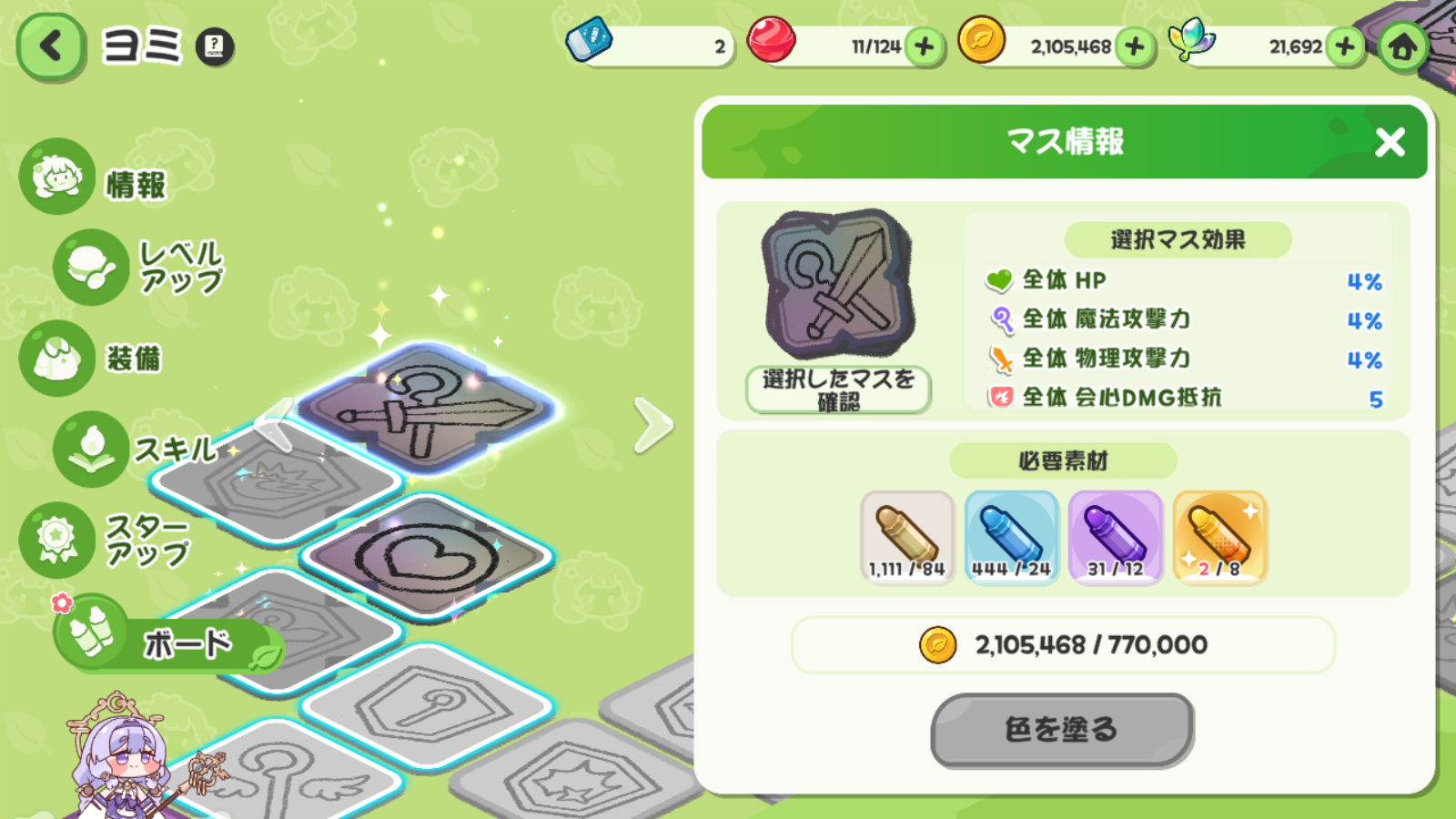 | … | 53225/11/03(月)16:16:41 ID:pkPZtq.6No.1369126519+あ…あ…あの…全体攻撃4%UPにつられてヨミのボード解放したけど奥にあるから費用対効果で言うとあんまり美味しくないにゃん…? |