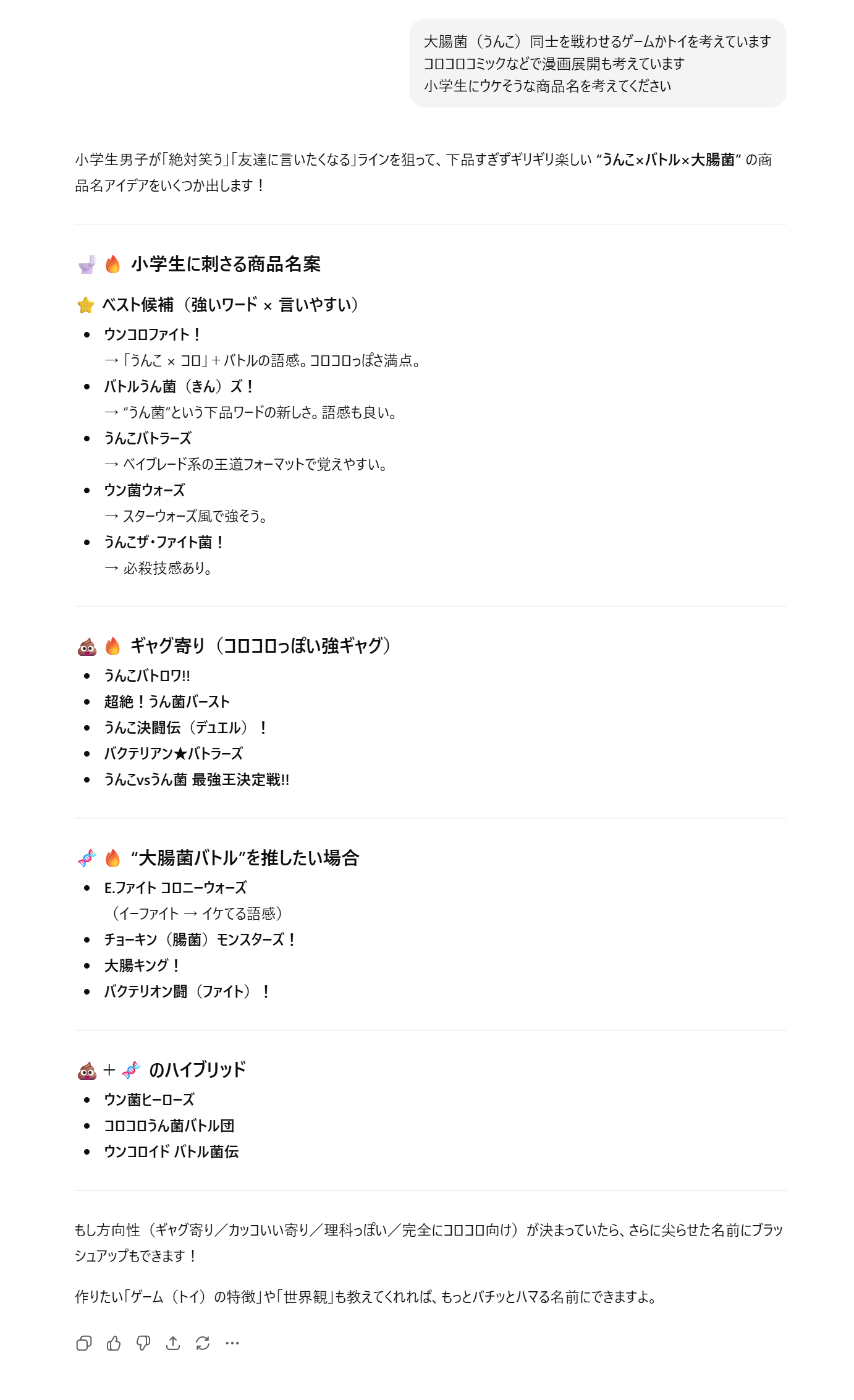 | … | 2625/11/17(月)17:35:15No.1373519017+あんまり変な質問ばっかりしてるとペット関連の相談に「よろしければ犬の大腸菌バトルについてお調べしますよ」とか提案してくるから気をつけろ |